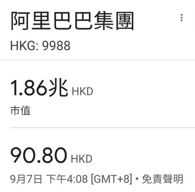 阿里巴巴集團總市值7兆台幣 2023.09.11